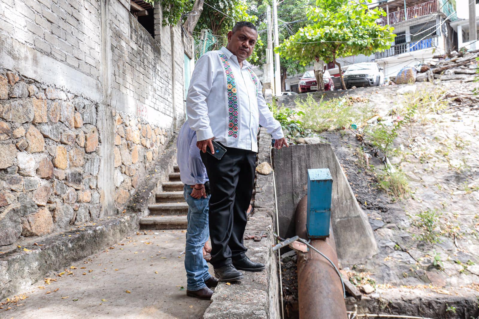 El funcionario municipal realizó un recorrido en la zona de Cumbres de Figueroa, iniciando en el andador Tuxpan, en donde se realizó la reparación y sustitución de una tubería de ocho pulgadas para mejorar el tandeo. También recorrió la calle Arellano, donde se está sustituyendo una tubería de seis pulgadas de acero; en este punto se detectaron tomas clandestinas.