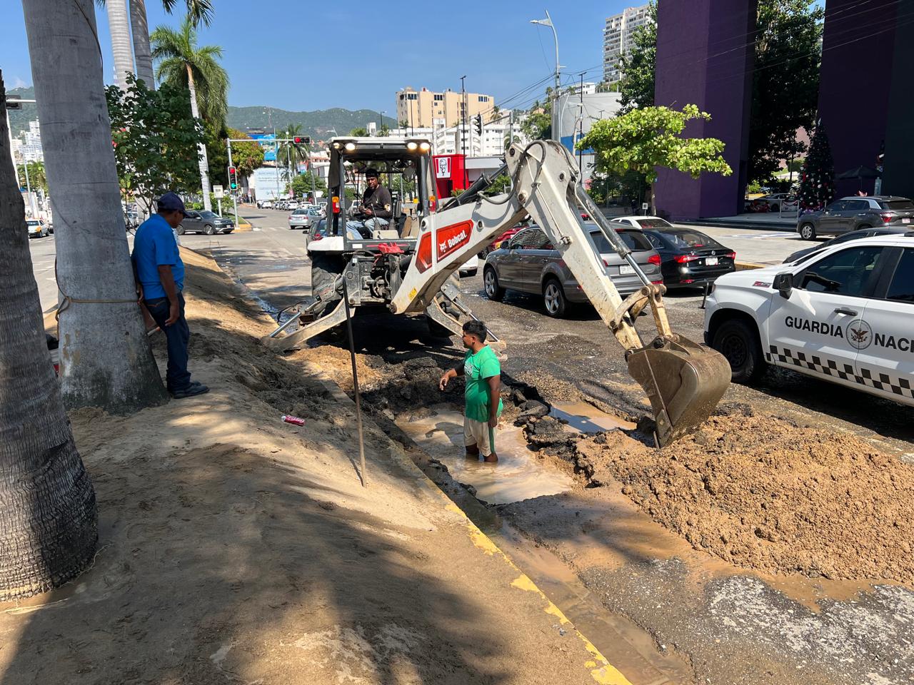 El Departamento Técnico de la dependencia dio respuesta al reporte de un socavón en la Costera Miguel Alemán, esquina cerrada Castillo bretón, donde arribó personal de la Comisión de Agua Potable y Alcantarillado del Municipio de Acapulco (CAPAMA) para realizar una inspección y atender el desperfecto.