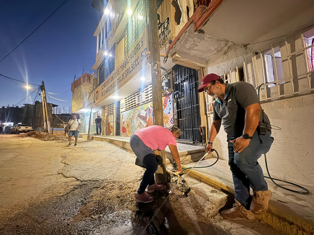 Además, el suministro en la calle Hornitos se normalizó tras la detección y solución de un taponamiento en la tubería. Se verificó que los vecinos tuvieran acceso al agua y se documentó mediante evidencia fotográfica y de video.