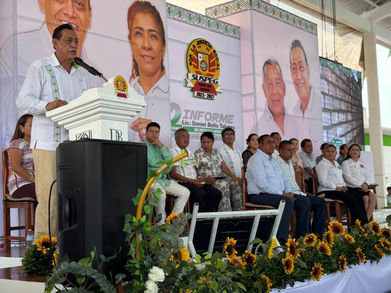 Acapulco, Gro, a 05 de diciembre del 2025. En representación de la presidenta municipal de Acapulco, Abelina López Rodríguez, el director general de la CAPAMA, Antonio Lorenzo Rojas Marcial, asistió al Segundo Informe de Labores del secretario general de la Sección XXVII del SUSPEG, Daniel Bello Tabares.