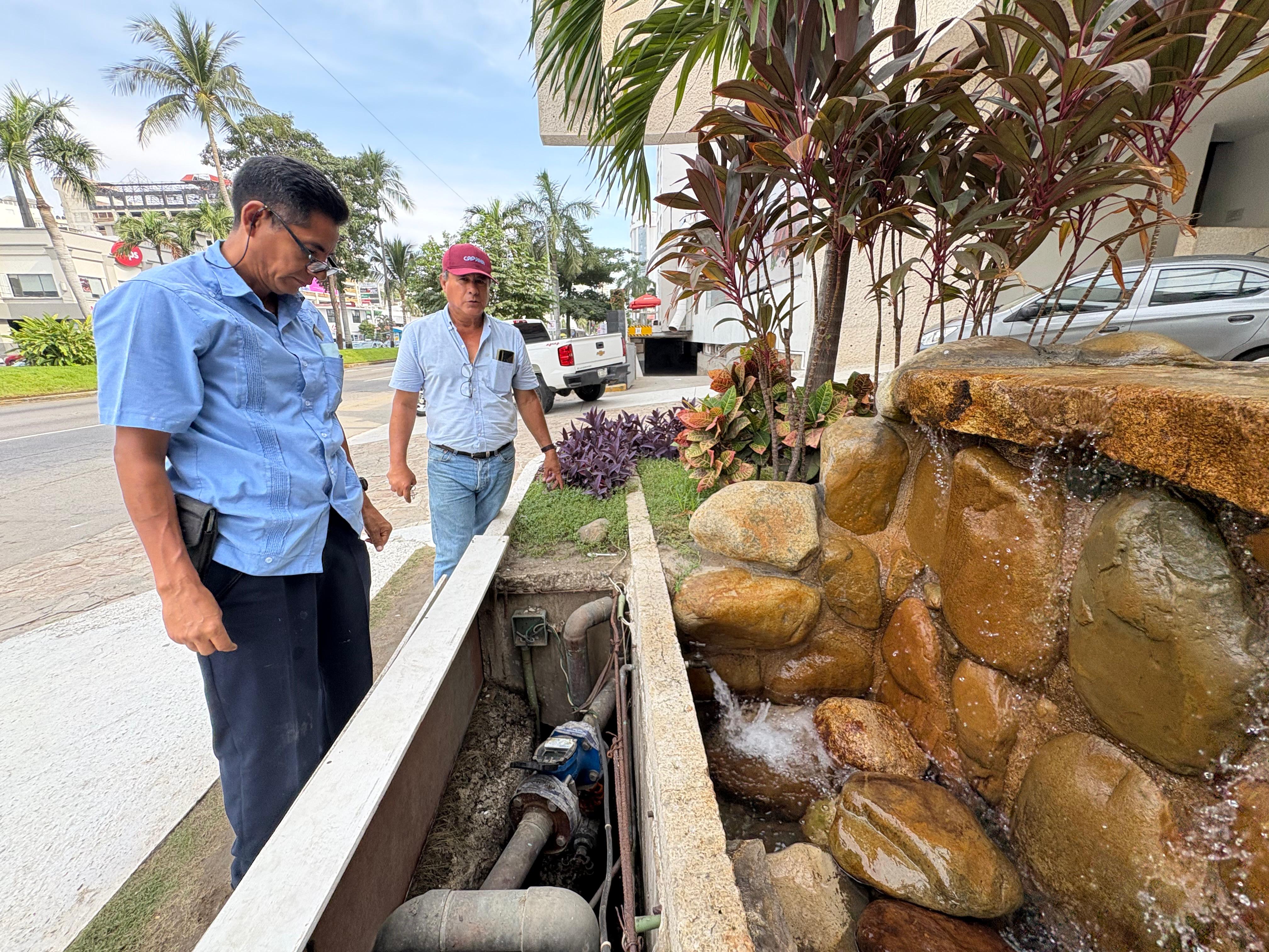Durante el operativo, se invitó al personal de mantenimiento de cada hotel a revisar conjuntamente los medidores y tomas principales, a fin de asegurar el correcto funcionamiento del servicio. Este mismo procedimiento se aplicó en los hoteles Malibú, Amares, Fiesta Americana, Emporio y Playa Suites.