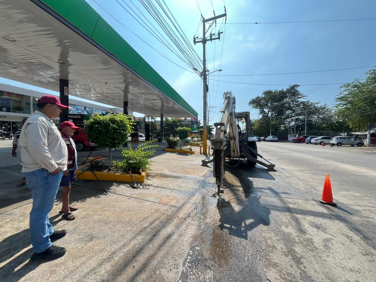 Una segunda fuga se presentó en la misma avenida, a la altura de la calle Río Coyuca. Con apoyo de maquinaria especializada, el equipo reparó la tubería, y se prevé que el servicio se restablezca completamente en un plazo máximo de 24 horas.