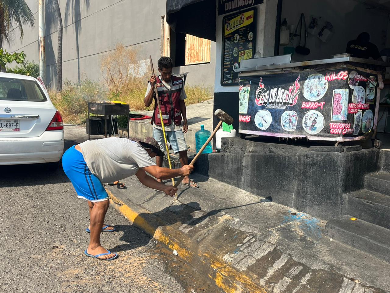 Personal operativo del organismo atendió una primera fuga localizada sobre la avenida Ruiz Cortines, frente a la escuela primaria Francisco Villa. La tubería afectada fue reparada y el área rellenada, lo que permitió la continuidad del suministro en esa sección de la ciudad.