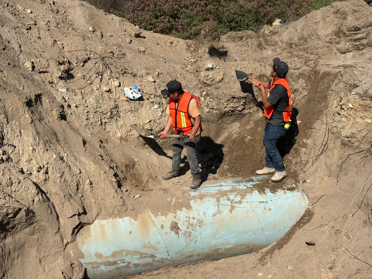 Acapulco, Gro., 17 de enero de 2026.- La instalación del bypass en el acueducto Lomas de Chapultepec continúa sin interrupciones, con personal de la Comisión de Agua Potable y Alcantarillado del Municipio de Acapulco (Capama) enfocado en contener la fuga y recuperar el caudal que se perdía hacia la zona Diamante.