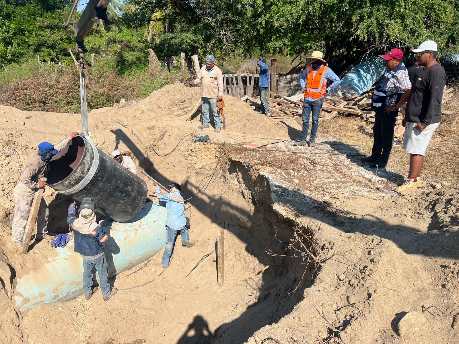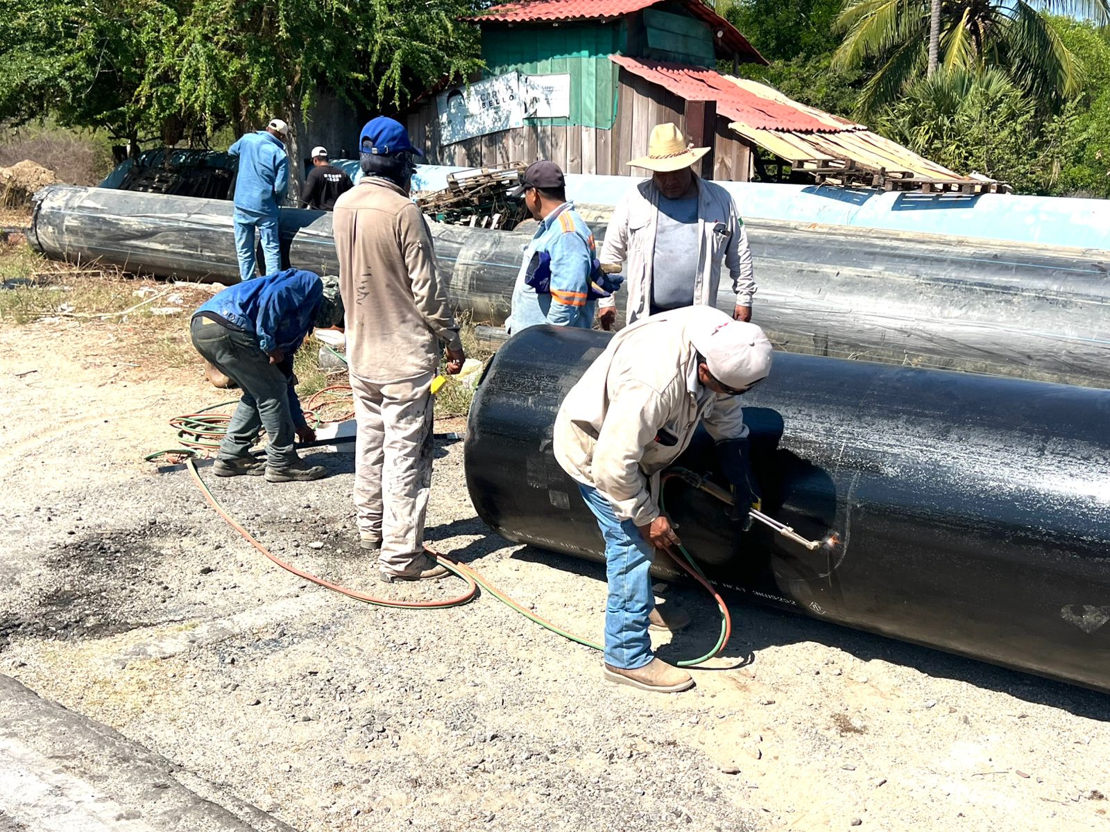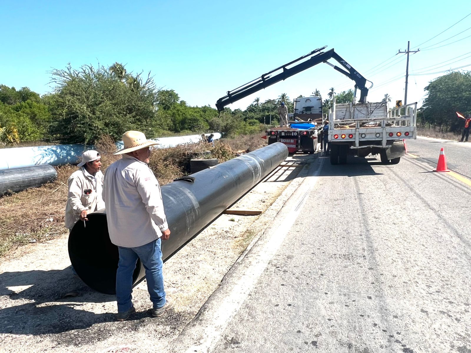 Como parte del proceso, ya quedó completada la unión de los tubos de polietileno de alta densidad a lo largo de 410 metros, además de la colocación de válvulas expulsoras de aire, lo que garantiza una conducción eficiente del agua y previene posibles fallas operativas en el sistema.
