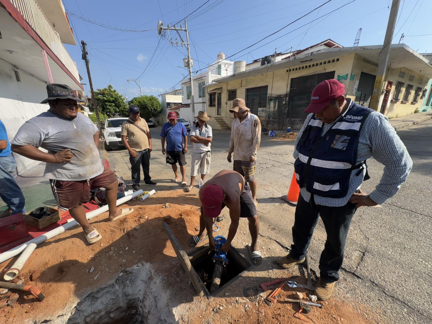 Acapulco, Gro, a 01 de febrero del 2026. Dando continuidad a los trabajos de las brigadas integrales de la Capama en la zona de Hogar Moderno, durante este fin de semana se llevaron a cabo acciones de reparación de fugas de agua potable, limpieza de válvulas y colocación de nueva tubería.