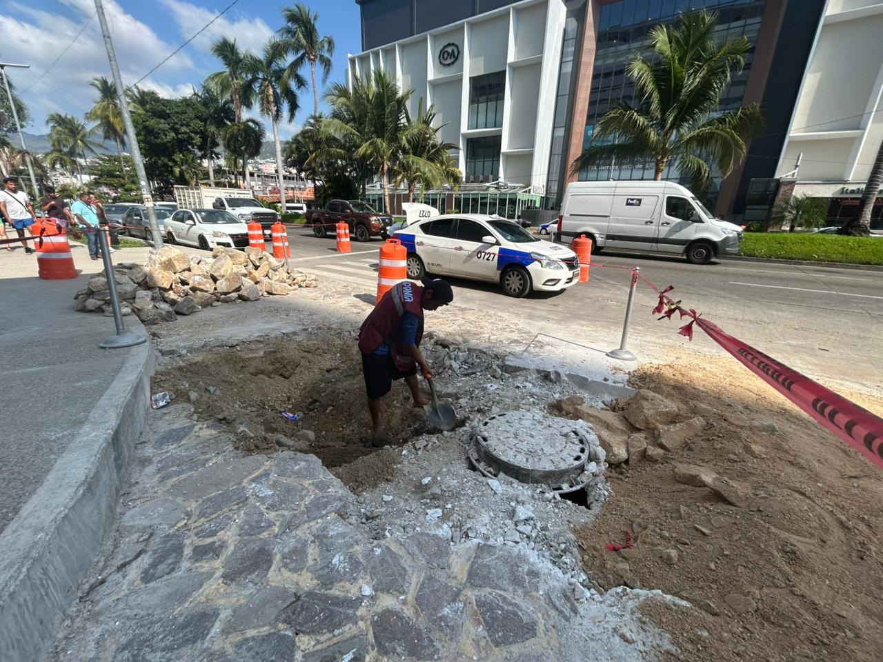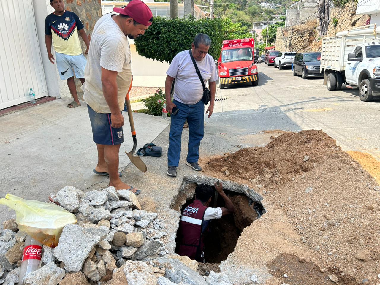 En el Fraccionamiento Costa Azul, parte alta, la paramunicipal repara una fuga en la tubería de 4 pulgadas de la Calle Juan de Dios Bonilla, con la colocación de 4 metros de material PVC. En esa misma vía se efectúa la sustitución de 9 metros de tubería de drenaje sanitario de 10 pulgadas de material Novafort.