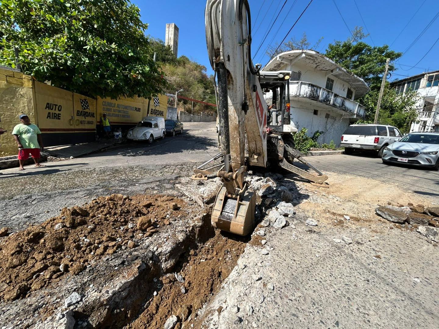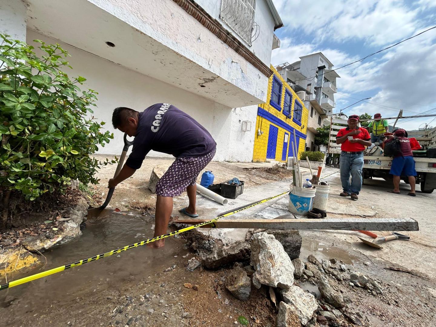 En el fraccionamiento Costa Azul se atendió una fuga reportada por vecinos, donde el equipo técnico intervino el tramo afectado, retiró el concreto dañado y reemplazó la tubería averiada, lo que permitió restablecer el suministro.