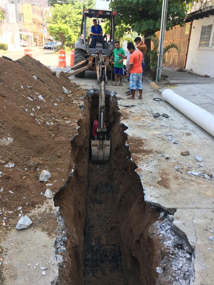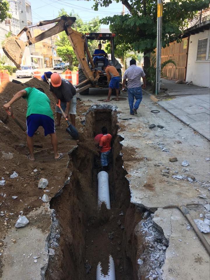 Este fin de semana, el departamento de Alcantarillado ejecutó una obra de rehabilitación sanitaria en la calle Horacio Nelson del fraccionamiento Costa Azul, donde se realizó el cambio de 30 metros lineales de tubería de drenaje de 12 pulgadas de diámetro, renovando el antiguo tubo de albañal existente por material de PVC de alta durabilidad, donde también se corrigió un socavón.