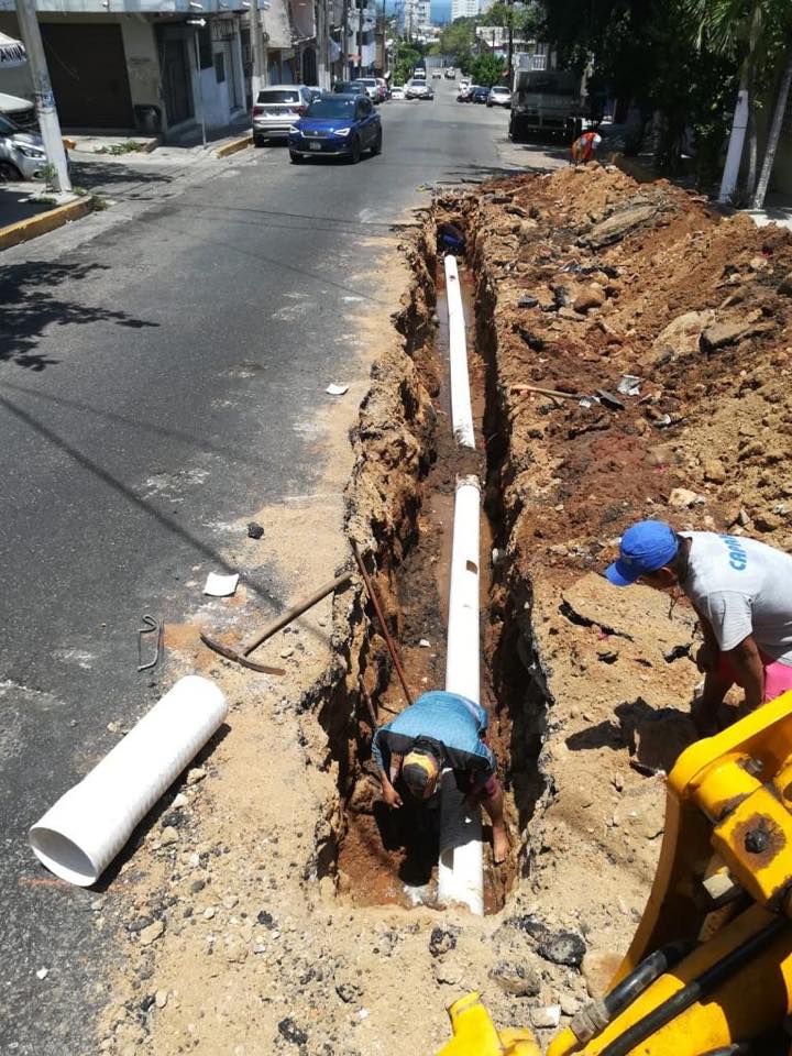 También se rehabilitaron tramos de tubería de drenaje en la calle Corregidora de la colonia Morelos; en avenida Vicente Guerrero (entre calle 4 y 5) de la colonia Vista Alegre; en Calzada Pie de la Cuesta y avenida Granjas del fraccionamiento Mozimba; en calle Cerro de los Cañones del fraccionamiento Las Playas; en calle Dragos de la colonia Cañada de Los Amates; en la calle Lomas del Mar en fraccionamiento Club Deportivo, así también en las calles comandante Carreón y Horacio Nelson del fraccionamiento Costa Azul.