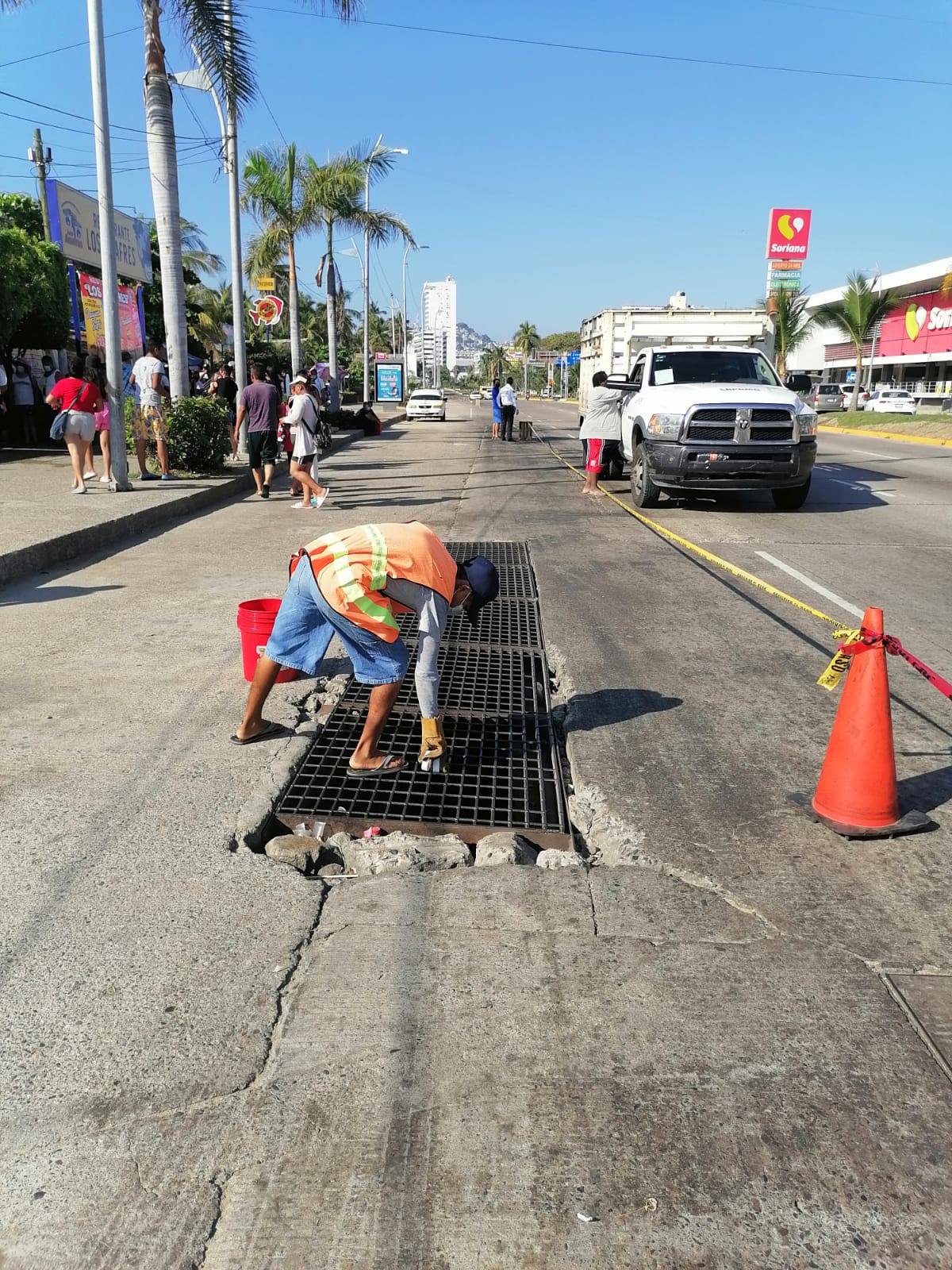 Insistió que, el desazolve se lleva a cabo mañana, tarde y noche para garantizar el buen funcionamiento del drenaje sanitario en la zona turística y evitar el derrame de aguas residuales a la bahía a través de los canales pluviales.