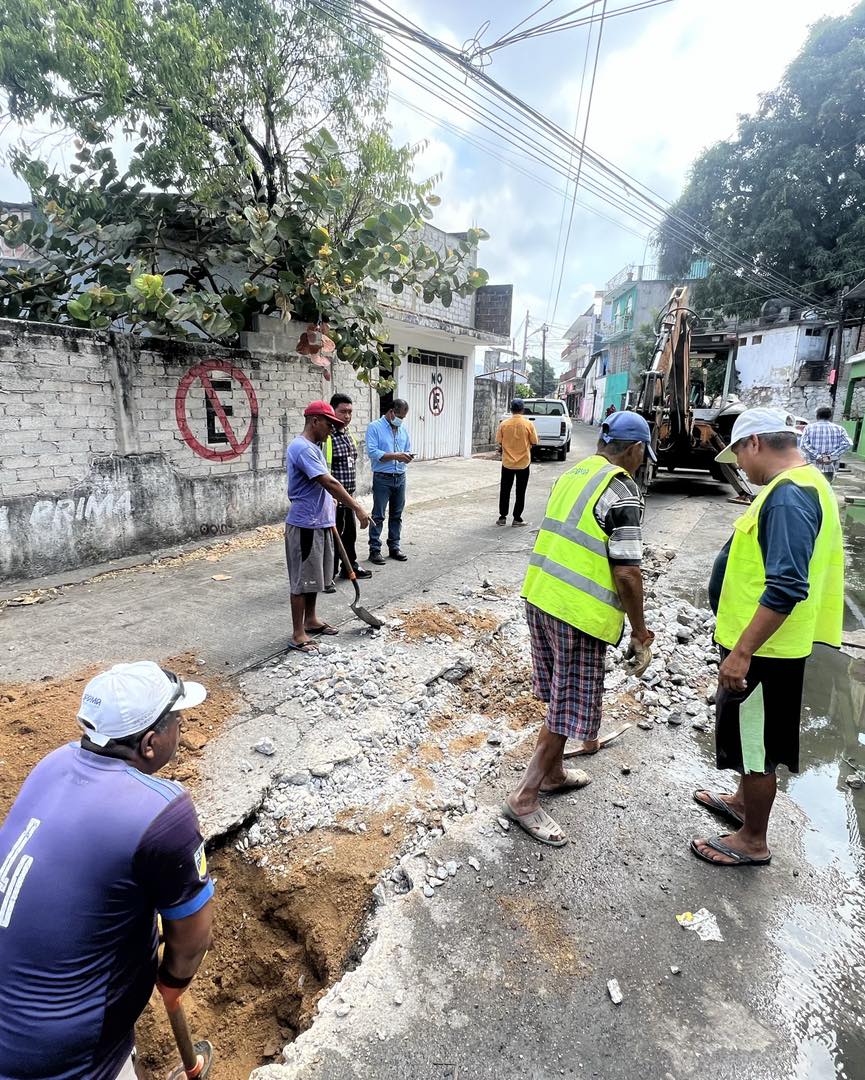 “Se está atendiendo el colapso de 30 metros de drenaje que los vecinos tuvieron bien a reportar, se están sustituyendo 30 metros de drenaje y se trata de una tubería de 10 pulgadas, también se llevará a cabo la reposición del concreto para que esté en buenas condiciones”, explicó el director Operativo.