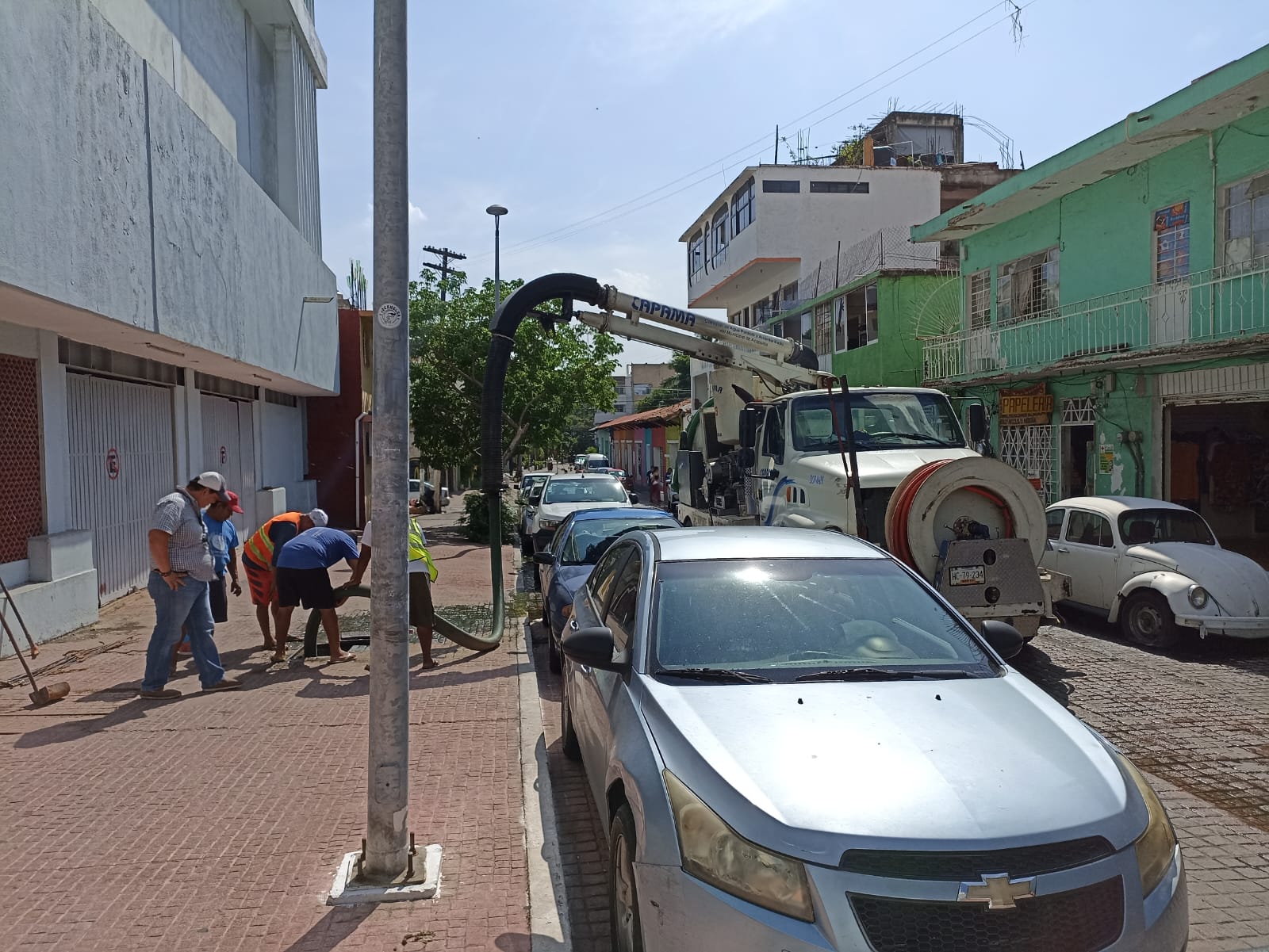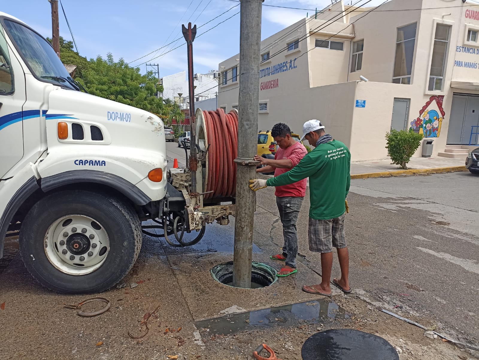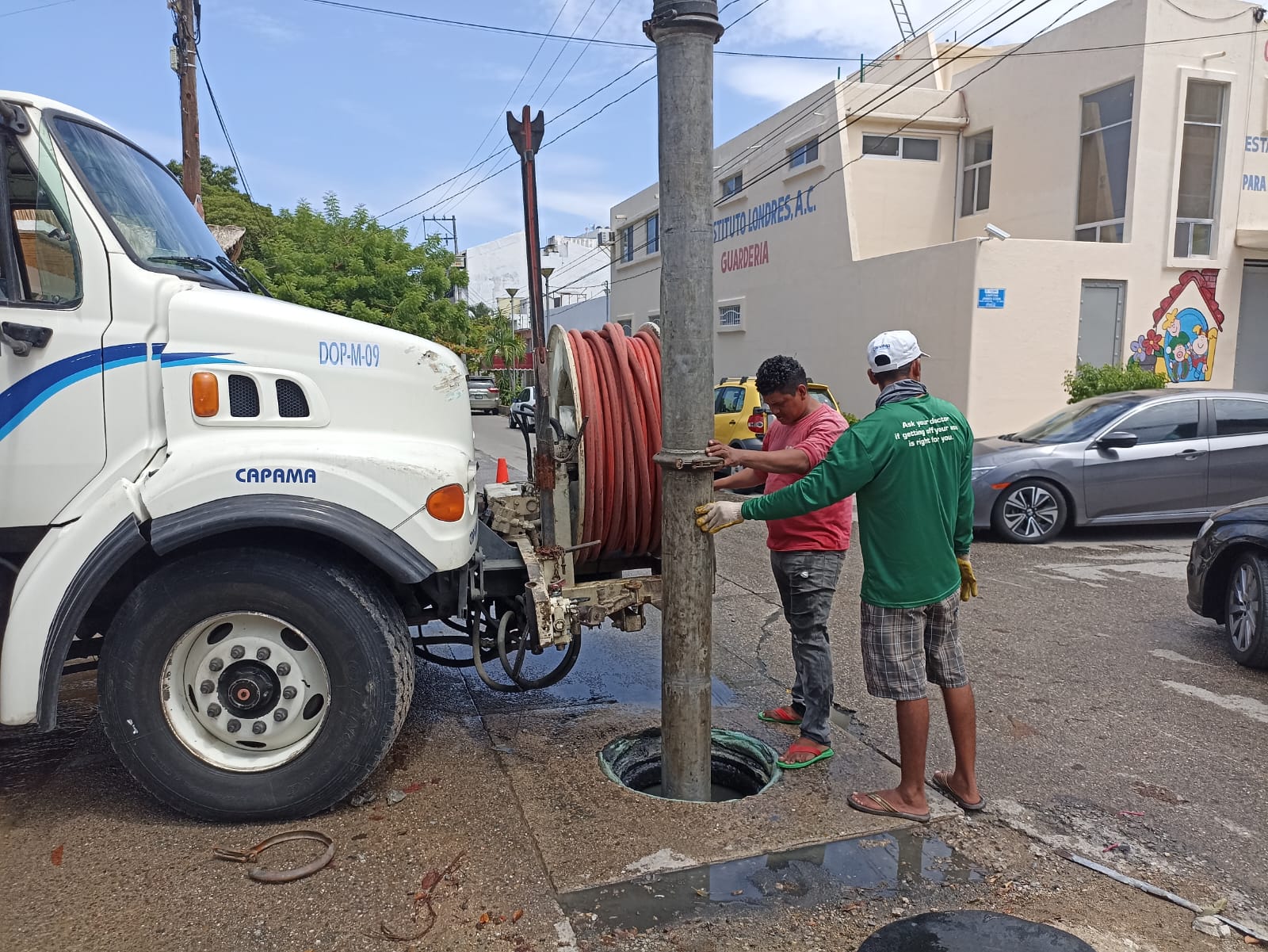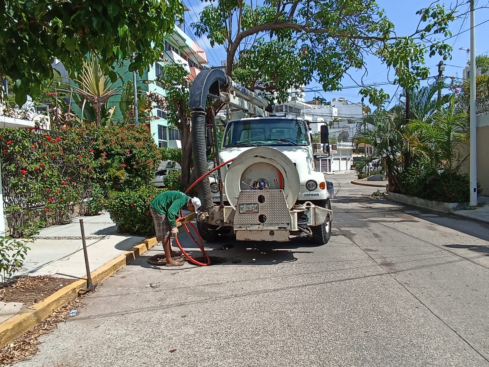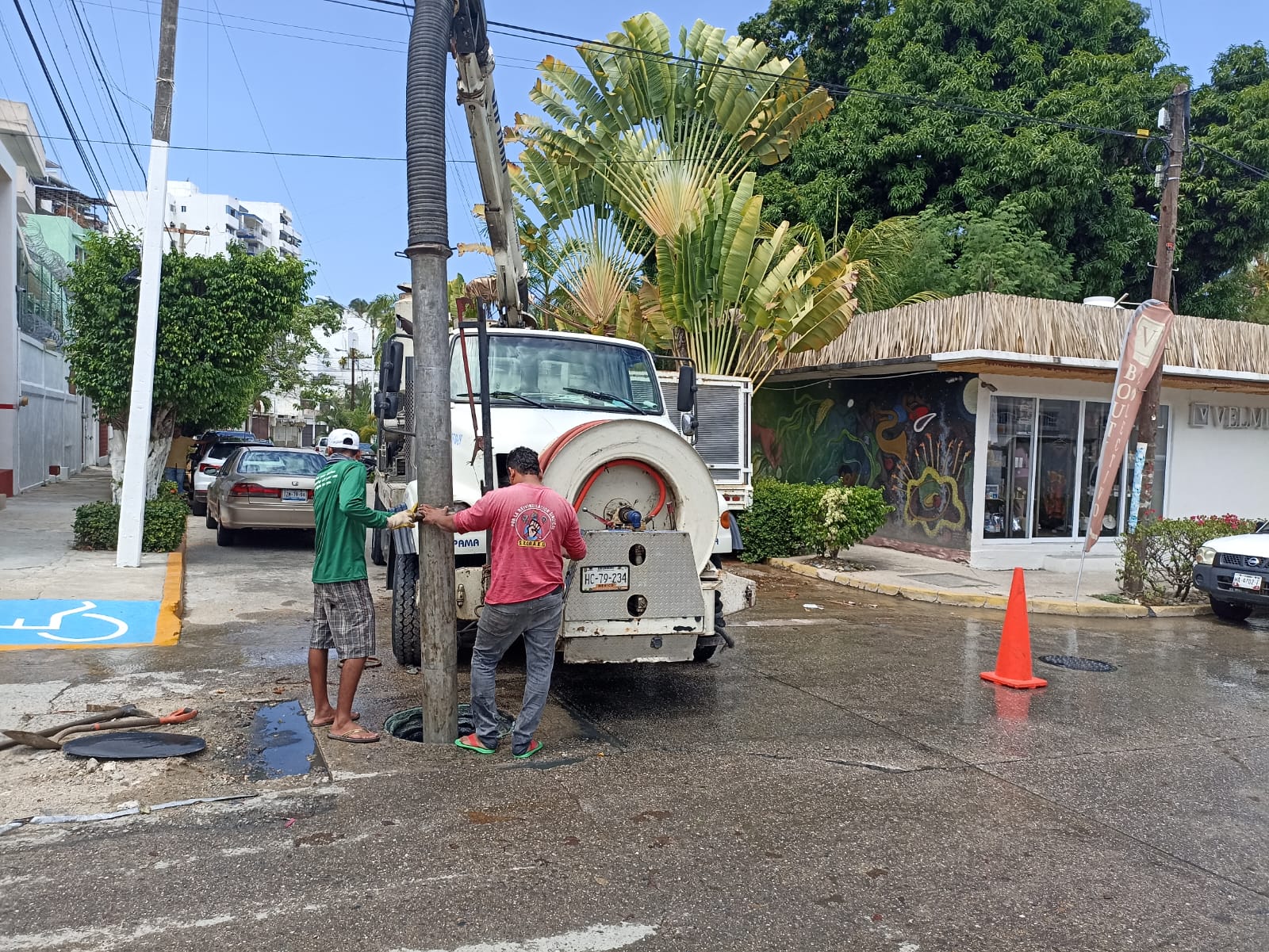 En una primera acción, personal del área de Alcantarillado de la paramunicipal desazolvaron 3 pozos de visita con ayuda de una maquina Vactor y se sondearon 100 metros en una línea de 12 pulgadas en las calles James Cook y Juan Sebastián El Cano en el fraccionamiento Costa Azul.